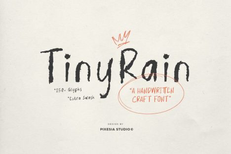 Tinyrain is a handcrafted handwritten font with a raw, textured stroke that captures the charm of imperfect handwriting. Its natural feel, playful character variations, and organic ink texture bring authenticity and warmth to any design. With over 250 glyphs—including swashes and alternate forms—Tinyrain gives you the flexibility to create unique and expressive typography.